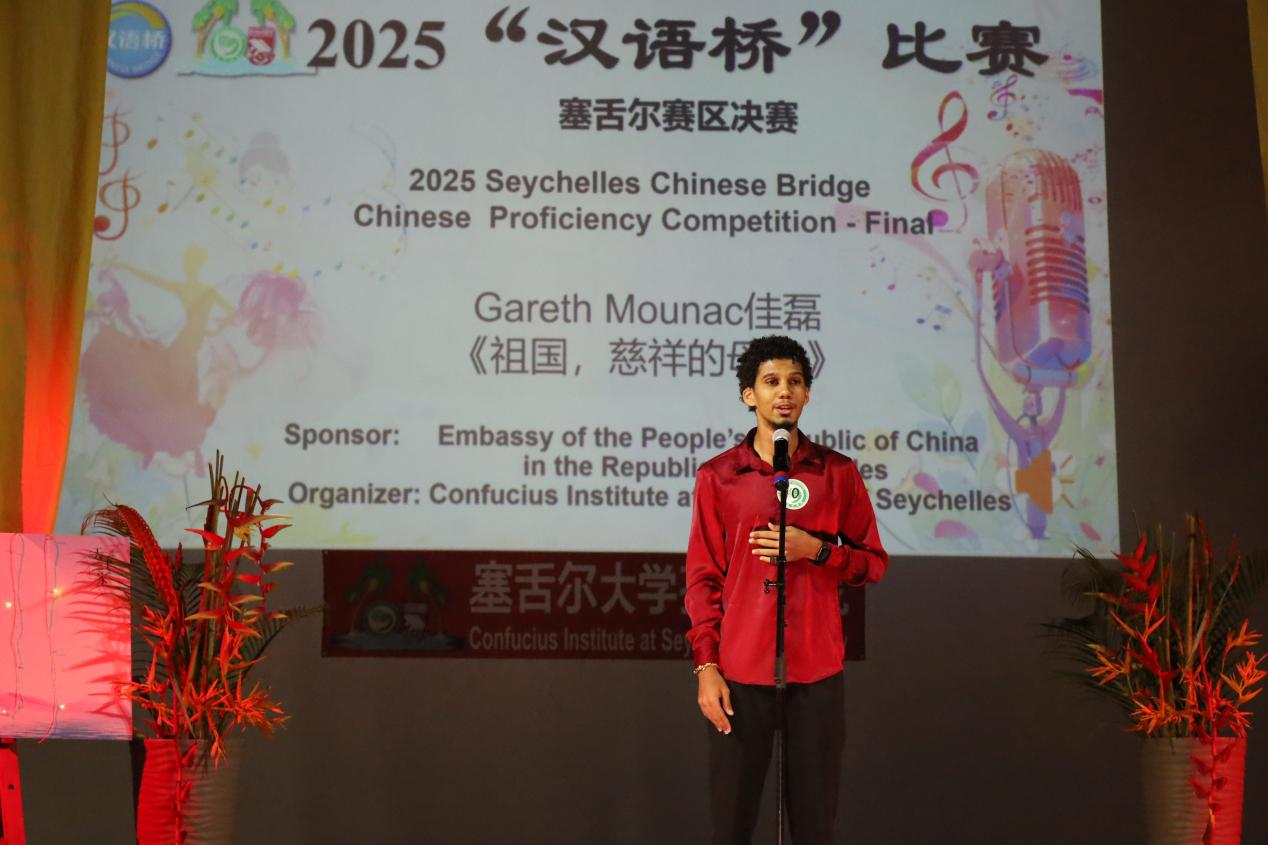 本次大赛由中国驻塞舌尔大使馆主办,塞舌尔大学孔子学院承办。参赛选手们用汉语讲述梦想,用精彩的歌曲、舞蹈、朗诵、绘画等表演来诠释对中国文化的热爱。