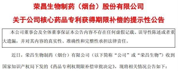 近日,荣昌生物公告其核心产品泰它西普获得国家知识产权局授予的专利权期限补偿,补偿天数为1827天,使得该药的专利权期满终止日从2027年6月15日延长到2032年6月15日。这是我国药品专利权期限补偿制度实施以来,继新疆华春生物的中药1.1类创新药参葛补肾胶囊、罗氏的抗PD-L1抑制剂阿替利珠单抗后,又一个获得“顶格补偿”的案例。