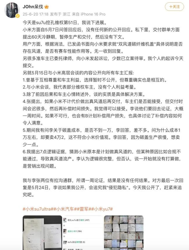 其透露,目前很多准车主已委托律师,向小米发起诉讼,少数已立案待审。该博主的个人的起诉6月20日提交。