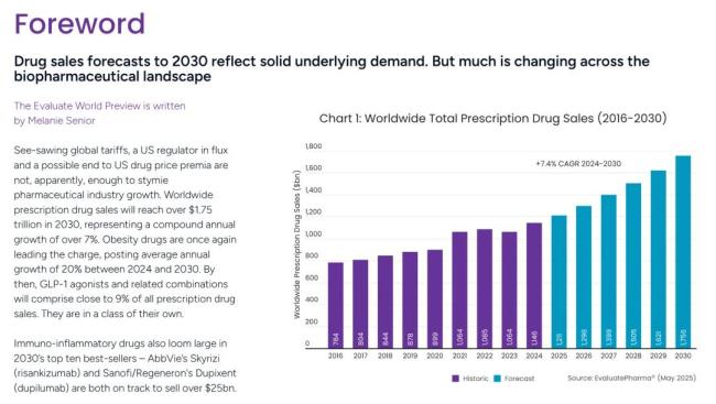 近日,EvaluatePharma发布《2025年全球制药行业展望》。