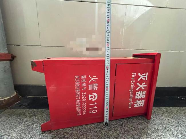 事发现场位于徐先生家所在楼栋两梯三户的结构中,出门通过约3米长的过道,左拐便是电梯走道。靠北的那部电梯临近一面窗户,窗户有三扇玻璃,中间一扇封闭固定,左右两扇窗扇无限位装置,可大幅向外打开。窗户未安装纱窗及防护栏。此外,窗户旁边有一个灭火器箱,孩子可能是踩着这个灭火器箱爬上窗户的。现场测量显示,窗台距地面约90厘米,侧倒的灭火器箱高约33厘米。