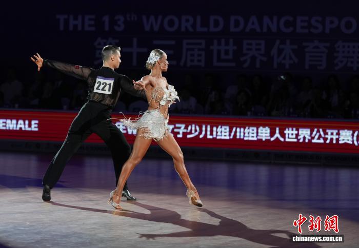 9月21日晚,2025年WDSF拉丁舞世界公开赛(新系列)决赛在成都举行。经过激烈比拼,爱沙尼亚组合康斯坦丁/波琳娜获得冠军。图为爱沙尼亚组合康斯坦丁/波琳娜在比赛中。中新社记者 安源 摄