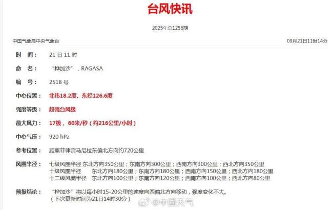浙江省气象台预计,明天浙江雨水明显减弱,除了沿海地区外,其他地区可以见到阳光,适合洗衣晾晒。“桦加沙”加强为超强台风,成为今年以来风王。今晨,在海上活跃的双台风“桦加沙”和 “浣熊”的强度都提升至超强台风级。“浣熊”未来路径向西偏北方向移动,对我国近海海域无影响。“桦加沙”已成为今年以来西北太平洋最强台风。据中央气象台21日11时台风快讯,“桦加沙”最大风力已达17级(60米/秒)。预计台风“桦加沙”22日穿过巴士海峡后,将于23日凌晨进入南海东北部海面,并将在24日凌晨至下午在广东沿海登陆,预计登陆时强度可达强台风级或超强台风级(14-16级,45-52米/秒)。之后,“桦加沙”将穿过雷州半岛进入北部湾海面,强度逐渐减弱。