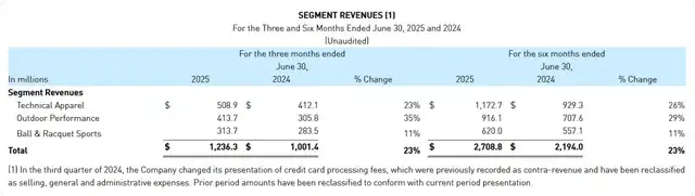 从商业角度看,根据亚玛芬体育发布的2025年第二季度财务业绩,集团营收达12.36亿美元,同比增长23%。其中,户外功能性服饰业务营收同比增长23%至5.09亿美元,始祖鸟在各地区、渠道和类别中均取得不错的业绩。亚玛芬体育自2019年起被安踏集团牵头的一个投资财团收购,持有约42.52%股份,并于2024年2月初赴美上市。主要分户外功能性服饰、山地户外服饰及装备和球类及球拍装备三个细分业务。始祖鸟作为其高端户外装备品牌之一,在业绩快速增长的同时,也在加速向高端化、时尚化转型,逐渐从“户外工具”转向“身份符号”。