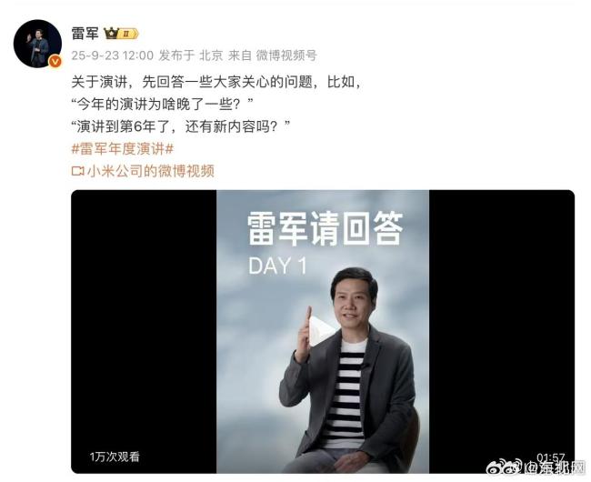 雷军回应演讲推迟原因 为蹭小米17流量!昨日,2025雷军年度演讲正式宣布定档9月25日。消息一出,迅速登上多个平台的热搜榜单。今年的雷军年度演讲相比往年有所推迟。在小米官方发布的短视频中,雷军解释了推迟的原因:为了蹭自家小米17的流量。