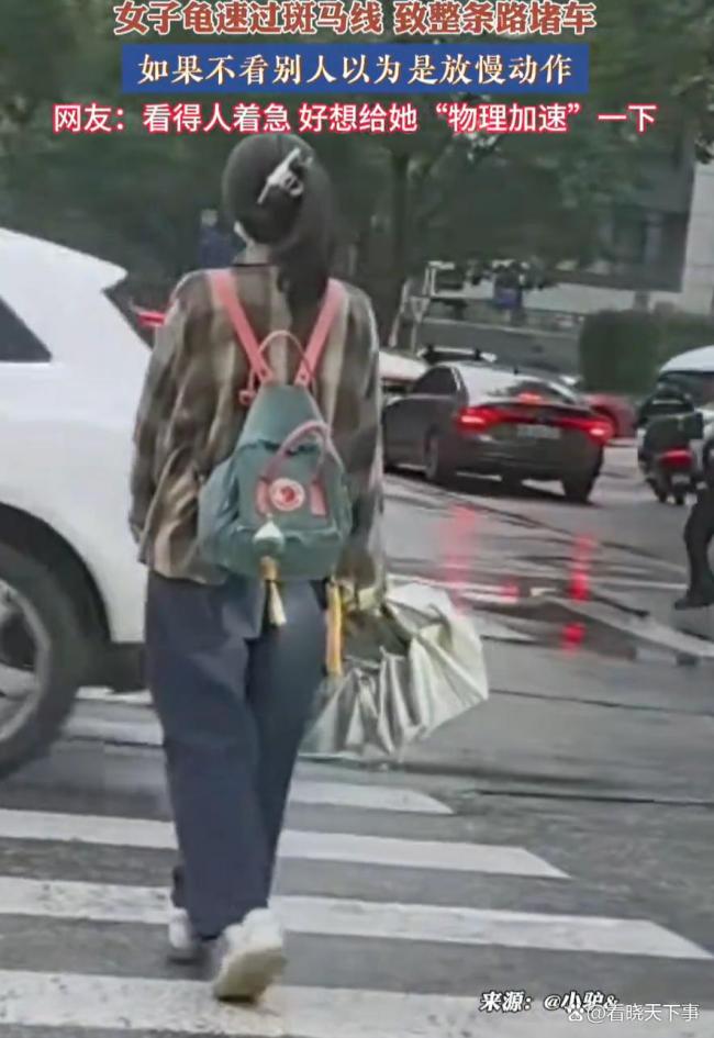 女子慢悠悠过斑马线致大堵车 网友:不知道还以为视频被延时播放