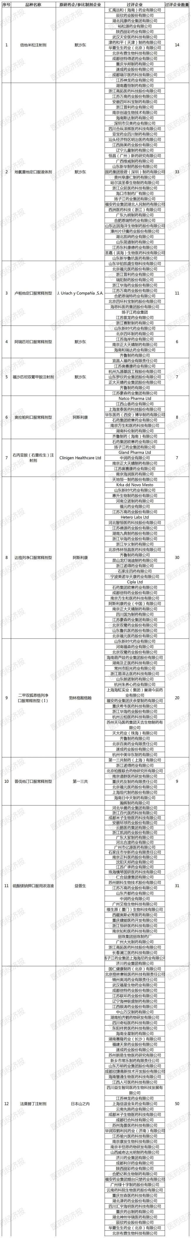 根据联采办发布的《全国首年机构需求量》,阿斯利康的达格列净口服常释剂型(10mg)的需求量最高,超过了4.6亿片,占该品种全部报量的两成;杭州中美华东的二甲双胍恩格列净片(I)紧随其后,需求量为2.3亿片;浙江远力健药业的瑞巴派特口服常释剂型(0.1g)、西安汉丰药业的尼可地尔口服常释剂型(5mg)、罗氏的多巴丝肼口服常释剂型(左旋多巴200mg与苄丝肼50mg)三款药物的需求量都超过1亿片/粒等。
