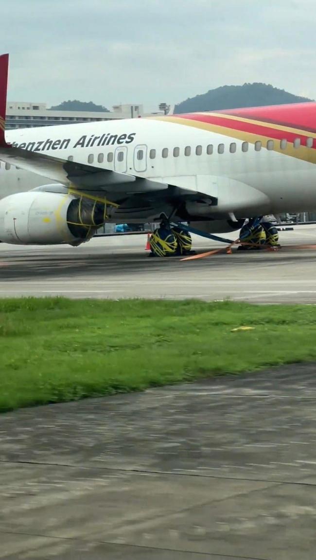 深圳航空客服工作人员告诉极目新闻记者,这一次台风的威力可能比过往更大,不只是深航飞机,部分其他航司的飞机也可能在深圳做停留,他们会采取一些措施进行防范,“飞机停机位下方会有一个扣,会采取措施固定住机身,尽量把飞机维持在原地”。深圳机场飞机被“五花大绑”防台风!