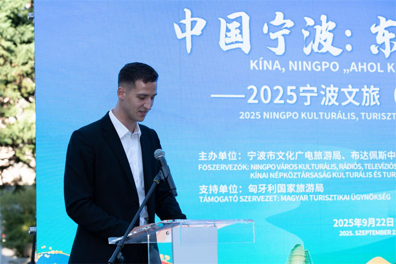 人民网华沙9月23日电 (记者禹丽敏)9月22日下午,天涯共此时——中秋节暨“中国宁波:东方的起点”文旅推介会在布达佩斯中国文化中心圆满举行。活动由宁波市文化广电旅游局、布达佩斯中国文化中心、中国驻布达佩斯旅游办事处联合主办,中国银行特别支持。值此花好月圆之际,中匈两国嘉宾以文旅推介、航线推广、主题特展、文化互动等形式,共赏中秋佳节意蕴,共话宁波城市魅力,为深化中匈文旅合作注入新动能。中匈两国百余名来宾出席活动,共赴这场 “东方起点” 之约。