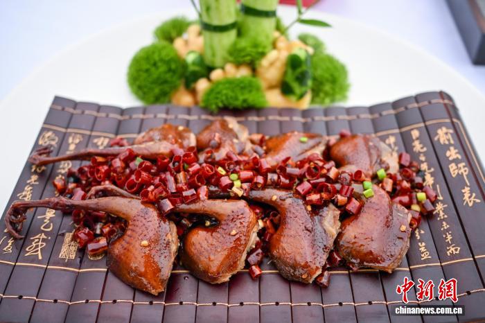 9月27日,一场精彩的厨艺技能大赛在四川眉山市东坡区太和公园星光湾举行。专业与业余选手同台竞技,为现场民众及游客呈现了一场兼具视觉与味觉的美食品鉴盛宴。图为参赛菜品“五指毛桃焗乳鸽”。中新社记者 刘忠俊 摄