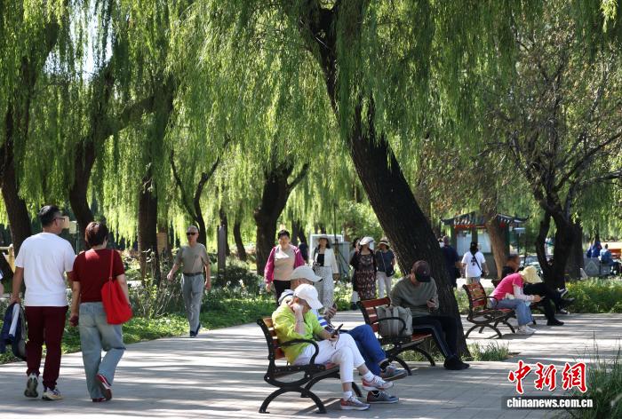 9月17日,游客在颐和园昆明湖南岸休憩赏景。中新社记者 赵隽 摄