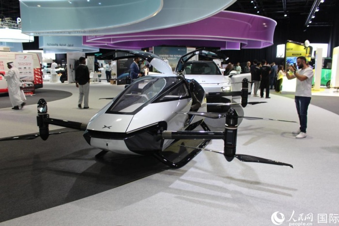 会场展示的飞行汽车。人民网 杰勒德·阿勒费尔摄