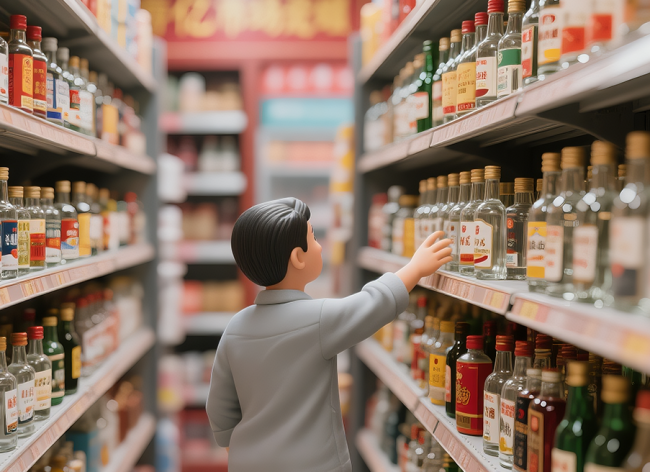 他的超市挨着几条主干道,客流量大,客源覆盖老中青三代,货架上光瓶酒琳琅满目,但真正能持续动销的仍是经过市场检验的产品。他试过不少包装类似主流品牌的新品,可顾客看看后,大多还是选熟悉的款。