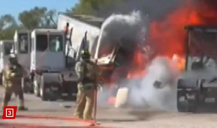 据报道,这架小飞机在起飞后不久便坠毁,与地面多辆卡车相撞并起火。