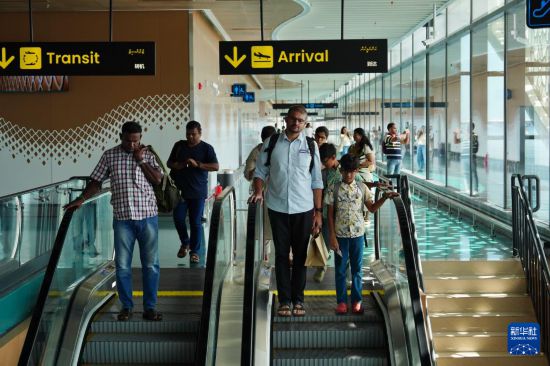 10月4日,人们在马尔代夫维拉纳国际机场新航站楼乘坐扶梯。新华社记者 伍岳 摄