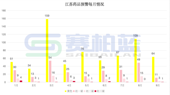 分月度数据显示,3月为年内预警高峰,单月预警药品达230个;1-9月各月预警数量依次为94个、51个、230个、79个、101个、94个、108个、173个、79个。