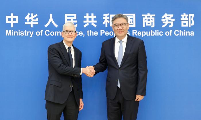 10月16日,商务部部长王文涛会见美国苹果公司首席执行官库克。双方就中美经贸关系、苹果公司在华业务发展等进行了交流。