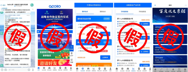 《声明》称,近期有不法分子冒用“萝卜快跑”“百度集团”名义开发虚假网站,并组建“福利群”“项目群”开展宣传,假借“股权交易”“站点代理”“车辆租赁”“投资基金”等名目骗取资金。此类行为不仅严重损害“萝卜快跑”品牌形象,更直接威胁广大群众财产安全。对此,萝卜快跑已第一时间向公安机关反馈相关线索。