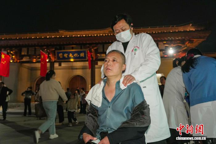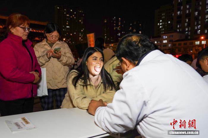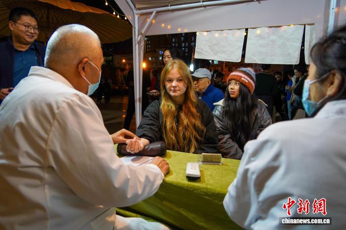 图为外国友人在夜市现场接受诊疗。中新社记者 李超庆 摄