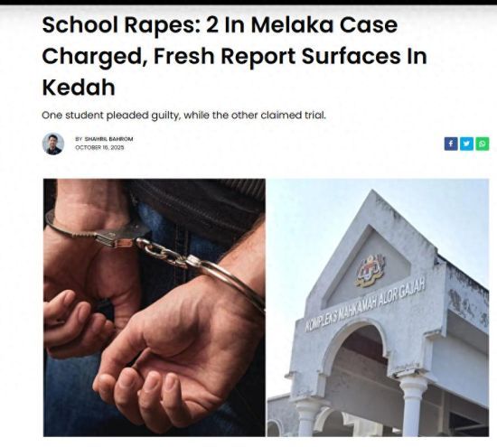 10月初,一段拍摄于马六甲州亚罗牙也县一所中学教室的轮奸视频,在马来西亚网络平台上迅速扩散。据警方初步调查,四名17岁男生涉嫌对同校一名15岁女生实施性侵。