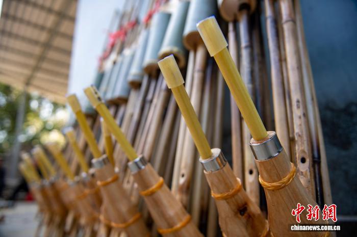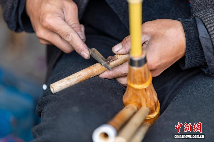 图为芦笙制作手艺人梁光林在制作芦笙管。吴德军 摄