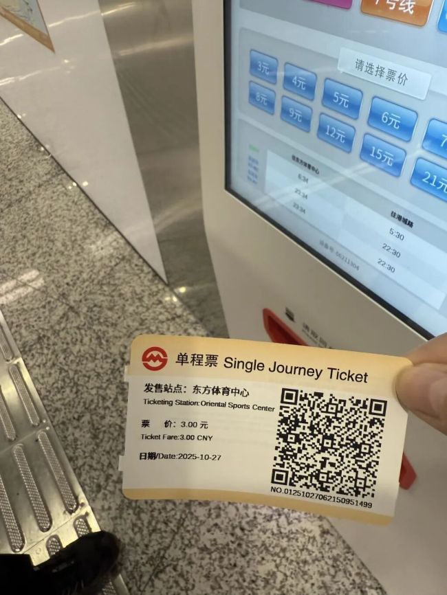 10月27日,在东方体育中心站,记者发现新机器使用起来更加智能,操作过程顺畅。提供的纸质车票需要扫码通行,无需插入闸机。不过,新售票机的线路图排版密集,字体较小,虽然缩放功能可以提升清晰度,但界面上缺少该功能的提示。