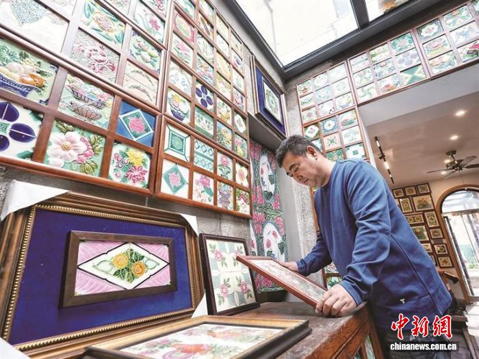 目前,费广业已收藏了几百个品种、上万片老花砖,品类之全、数量之多全国罕见,是大连乃至中国老花砖最大藏家之一。“老花砖价格较高,便宜的每片几十元钱,珍稀的每片数千元。”费广业告诉记者,他收藏过程中经常被感动,一些国内藏友为了不让老花砖外流,主动放弃卖高价机会,将许多珍稀品类半卖半赠给他。