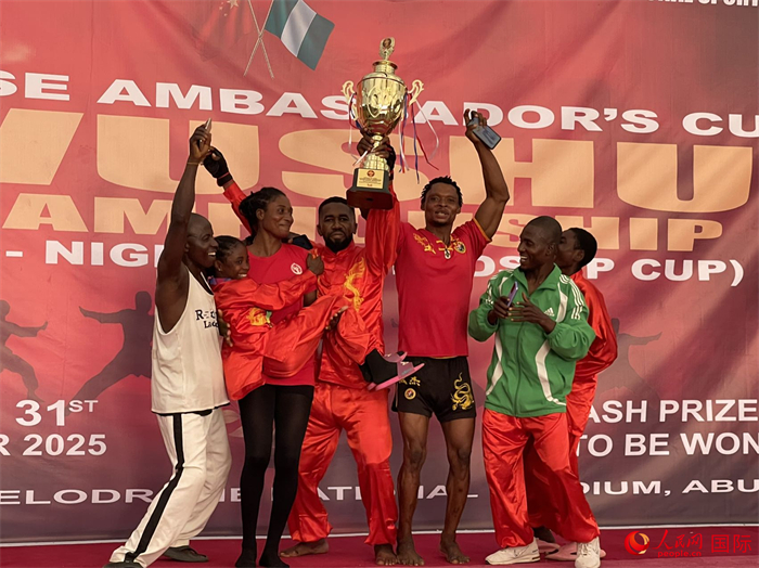 人民网阿布贾11月1日电 (记者姜宣)10月31日,“中国大使杯”尼日利亚武术锦标赛决赛在阿布贾国家体育馆举行。本次活动由中国驻尼日利亚大使馆和尼日利亚国家体育委员会联合主办,尼日利亚中国文化中心和阿布贾武术协会联合承办。中国驻尼日利亚大使于敦海,尼日利亚国家体育委员会主席谢胡、总干事布科拉出席决赛活动并致辞,尼日利亚中国文化中心主任杨建兴参赞,尼日利亚联邦首都区社会发展秘书处常秘奥卢布米,及尼日利亚多个文化体育机构嘉宾、多所学校师生、在尼中资企业代表等逾千人参加了活动。