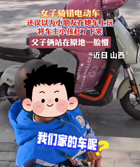 女子骑错电动车,误以为车上的小孩在玩耍,将其赶下车