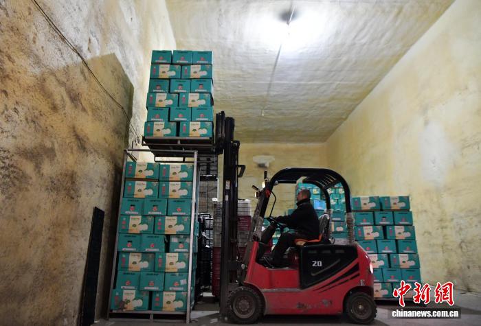11月6日,河北赵县,一家梨果销售企业的工作人员正在搬运梨果。中新社记者 翟羽佳 摄