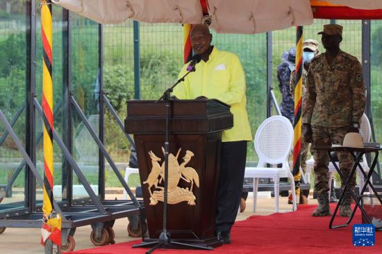 11月20日,乌干达总统穆塞韦尼在卡穆利区举办的首批输华干辣椒启运仪式上发表讲话。新华社发(罗纳德·塞坎迪摄)