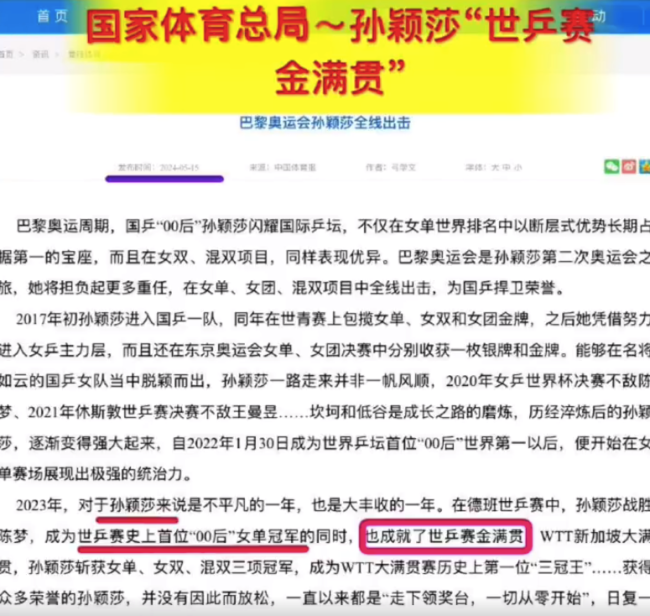 乒乓球的世锦赛金满贯达成需要拿到单打、女双、混双、团体四项冠军,孙颖莎四项冠军已拿了两圈,已成为世乒赛首位女子双圈金满贯。