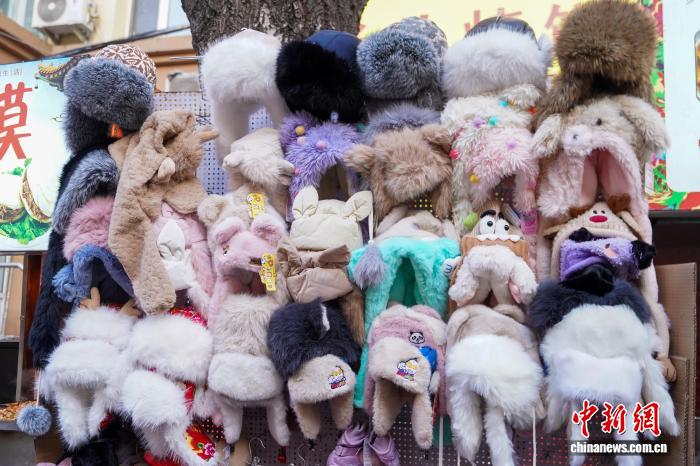 12月2日,黑龙江哈尔滨,在街头售卖的各种帽子。当日,黑龙江哈尔滨最高气温今冬首次降到-10℃以下 ,在哈尔滨红专街早市,棉帽子、大花袄等保暖物品摆上街头,游人纷纷选购。中新社记者 赵宇航 摄
