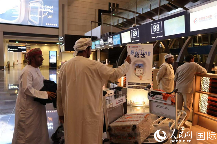 11月30日晚,在马斯喀特国际机场,准备前往北京的阿曼旅客正在办理值机手续。人民网记者 张志文摄