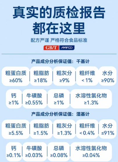 产品核心是高达40%以上的鸡肉含量,主要选用冻鸡胸肉,提供了扎实的动物蛋白。更关键的是其营养成分:以干物质计,粗蛋白含量不低于60%,粗脂肪不低于18%。这意味着即使在水分含量很高(湿基计超90%)的情况下,它依然能提供猫咪日常所需的核心能量和构筑体质的蛋白质。同时,产品严格保证了钙、磷、牛磺酸等关键元素的科学配比。例如,牛磺酸含量≥0.55%,这是维护猫咪心脏和视力健康不可或缺的。让猫咪在愉快喝汤的同时,就完成了基础营养的补充,一举两得。