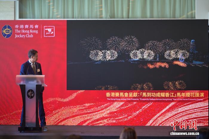 图为香港赛马会行政总裁应家柏(左)、“马年大使”郭富城出席记者会。中新网记者 陈永诺 摄