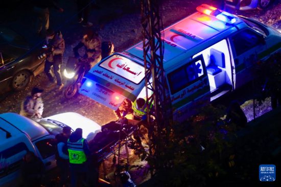 1月21日,在黎巴嫩南部盖纳里特镇,医护人员在以军空袭后抢救一名伤员。 新华社发(阿里·哈希绍摄)