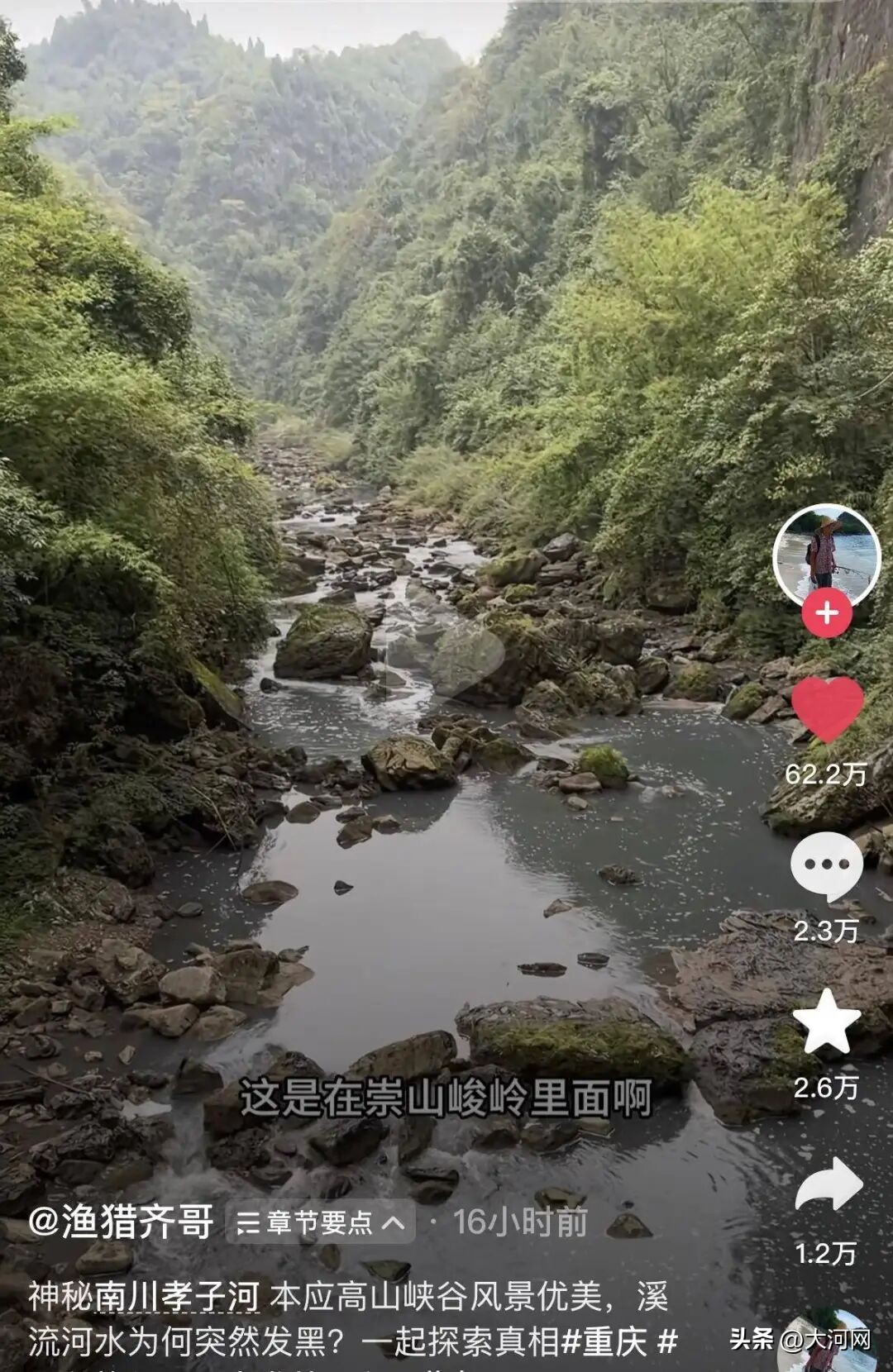 11月9日至10日,博主“渔猎齐哥”连续发视频曝光,重庆市南川区孝子河河水严重污染,此事引发高度关注。“渔猎齐哥”在短视频平台拥有300多万粉丝,他一直致力于环境污染曝光。视频中,他称接到粉丝求助,得知重庆市南川区孝子河河水污染。赶到现场后...
