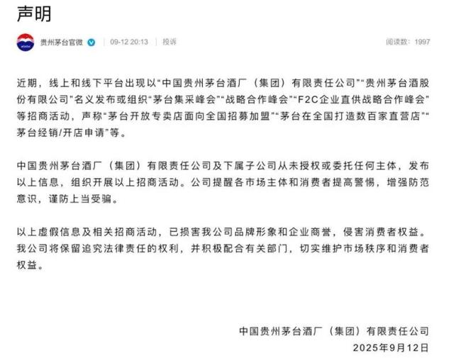 贵州茅台严正声明:近日加盟及直采飞天均为虚假信息茅台打假。