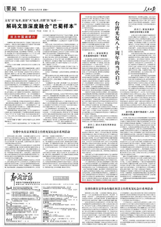 多家央媒就台湾前途命运密集发声 共促统一大业今年是中国人民抗日战争暨世界反法西斯战争胜利80周年、联合国成立80周年,也是台湾光复80周年、台湾人民乙未武装抗日130周年、台湾建省140周年