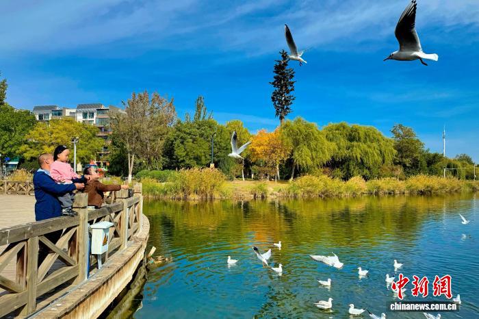 红嘴鸥翩跹飞舞 “塞上江南”秋日画卷醉游人中新网银川10月15日电 (记者 李佩珊)深秋时节,宁夏银川湖泊湿地波光潋滟,成千上万只红嘴鸥时而掠过水面,时而盘旋空中,与岸边驻足观赏的游客构成一幅和谐动人的画面。不远处的滩涂上,几只素有“鸟中大熊猫”之称