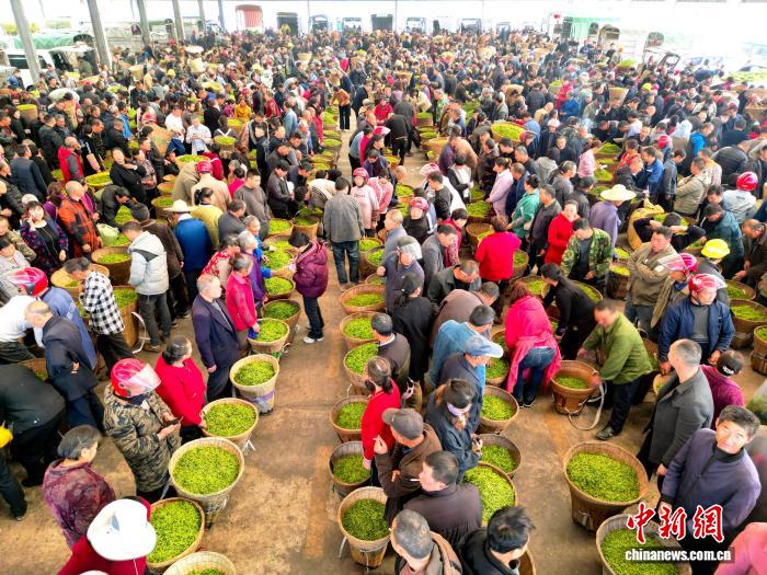 四川鲜茶交易市场迎高峰图为繁忙的双河鲜叶交易市场。(无人机照片)中新社记者 张浪 摄 图为繁忙的双河鲜叶交易市场。(无人机照片)中新社记者 张浪 摄
