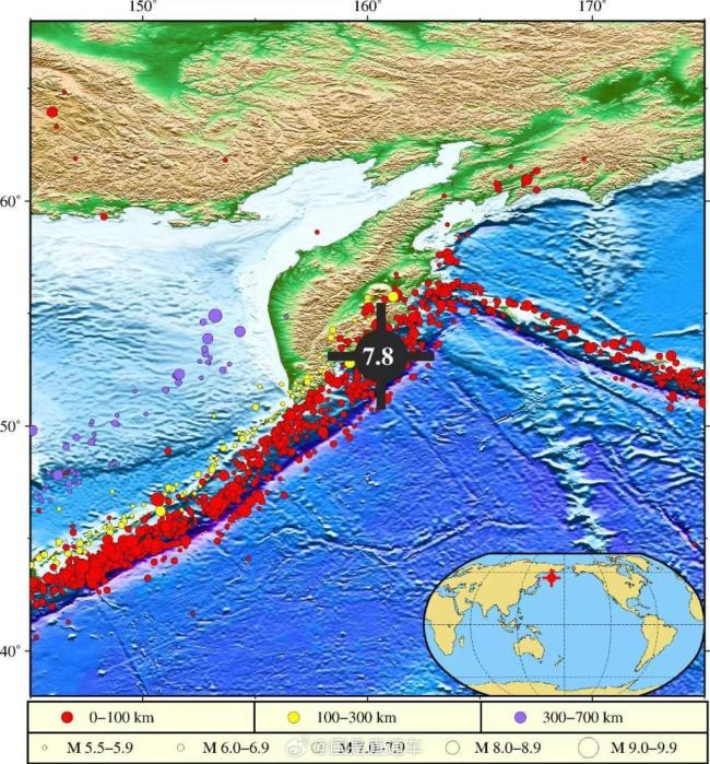 中国自然资源部海啸预警中心发布消息,2025年9月19日2时58分(北京时间),堪察加东岸近海海域(北纬53.1度,东经160.6度)发生7.8级地震,震源深度为20千米