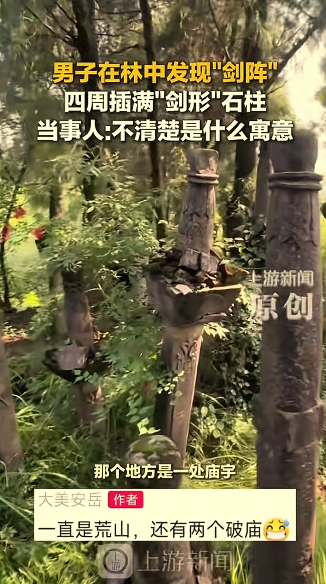 四川一男子在林中发现“剑阵”!四川一男子在林中发现“剑阵”。“万万没想到!”四川资阳,男子去山上游玩,本以为是一片荒山,不料,他竟然直接愣在了原地,不是因为发现了宝贝,而是被眼前成片的“石头剑阵”吸引住了,男子傻眼了,看了半天也不愿意离开。以前看过的武侠剧和小说,男主受...