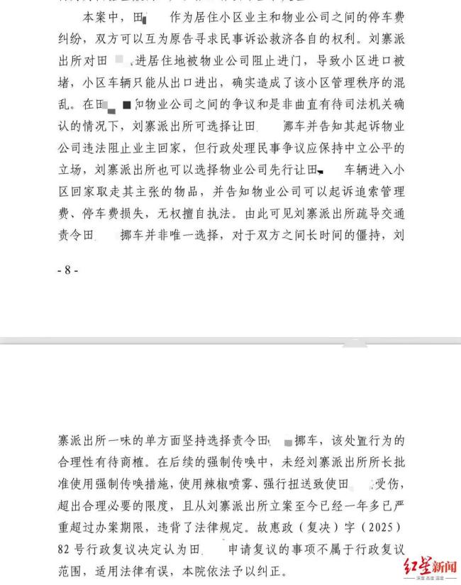 民警强制传唤致人受伤后续 法院判决警方行为违法近日,河南郑州的田先生因与小区物业发生纠纷,车牌被“拉黑”无法出入小区,他将车停在小区入口处。田先生多次报警,警方均以民事纠纷为由未予立案。田先生称,在一次纠纷中他被民警带离时身体受伤