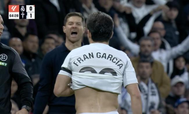 弗兰·加西亚职业生涯首次吃到红牌 两黄变一红离场在西甲第15轮比赛中,皇家马德里主场迎战塞尔塔。比赛进行到下半场时,皇马后卫弗兰-加西亚在两分钟内连续领到两张黄牌,最终被红牌罚下。这是他职业生涯中首次被罚出场