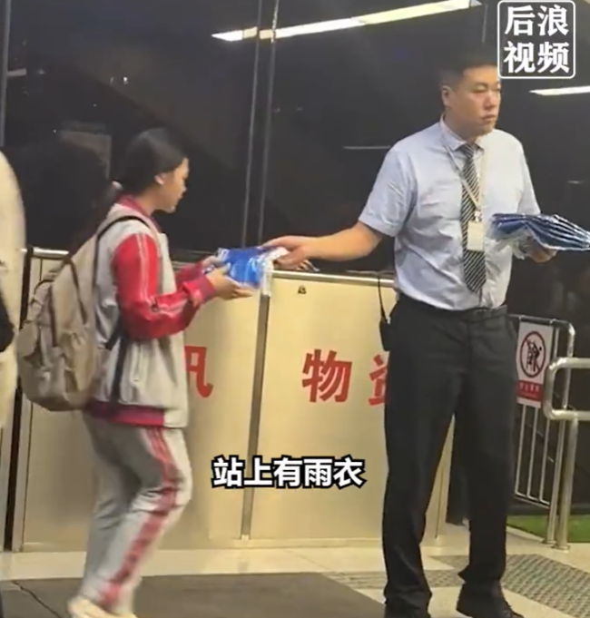 下班遇大雨地铁为乘客免费发雨衣近日,山东济南。下班高峰突降大雨,地铁工作人员站在地铁口为出站乘客免费发雨衣。济南地铁工作人员称:每站都有储备的雨衣,遇到突降雨的情况乘客可自行去找工作人员拿,有的乘客不知道所以有的站工作人员会站在地铁口去发放。...