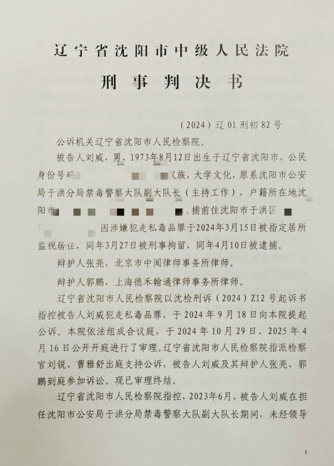 10月14日上午,辽宁省沈阳市中级人民法院对“沈阳禁毒大队长刘威涉嫌走私毒品罪”一案作出宣判。法院判决刘威走私毒品罪名成立,判处其有期徒刑三年六个月,并处罚金人民币五万元。刘威当庭表示不服判决并决定上诉