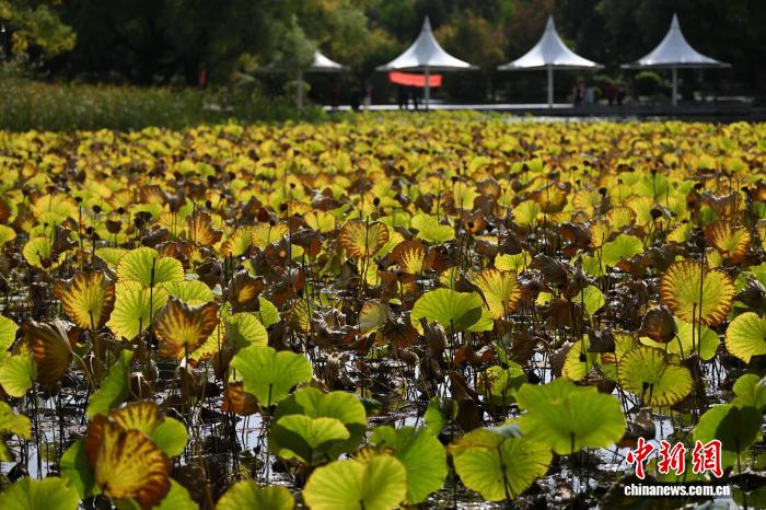 呼和浩特秋意正浓 民众公园内放松10月11日,内蒙古呼和浩特市,湖内泛黄的荷花叶。中新社记者 刘文华摄 10月11日,内蒙古呼和浩特市,民众在湖边放松。中新社记者 刘文华摄