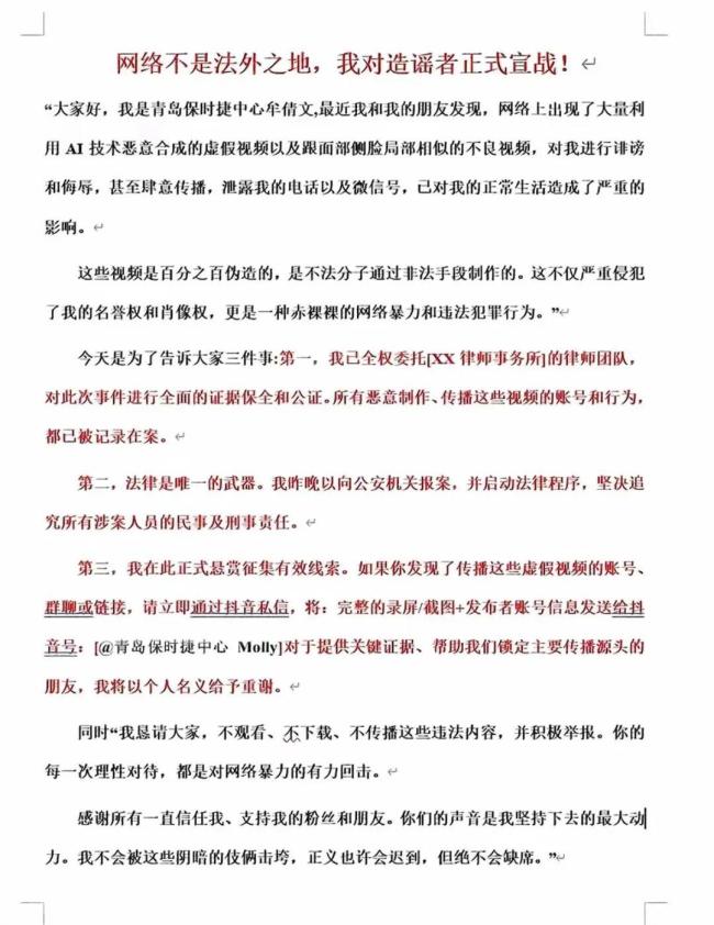 保时捷女销冠悬赏征集造黄谣线索 AI诽谤影响生活10月10日,青岛保时捷销售中心的牟女士在社交媒体上发布了一张自己在派出所处理相关事宜的照片
